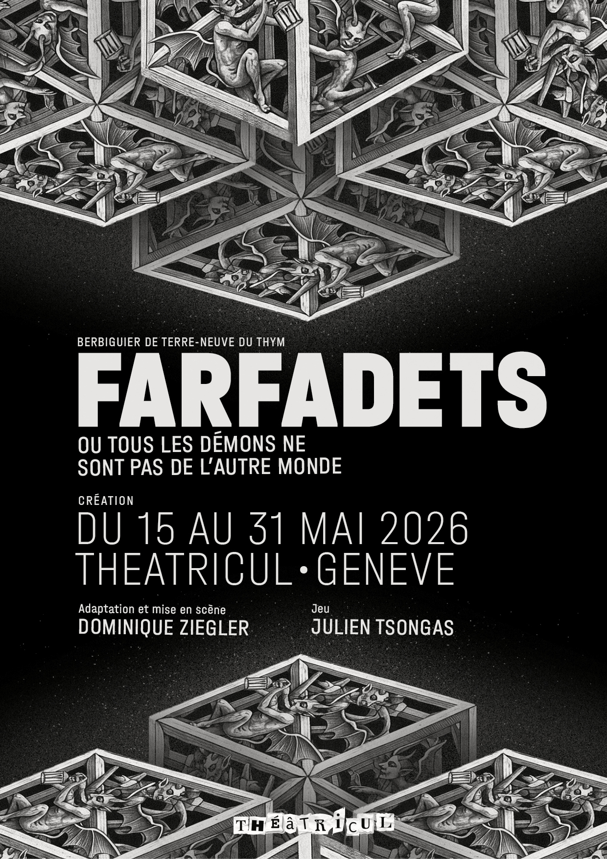 Berbiguier de Terre-Neuve du Thym était un citoyen français d’Avignon, qui après s’être fait tirer les cartes par une diseuse de bonne aventure, commença à voir des êtres maléfiques partout autour de lui, qu’il appelait les « farfadets ». Son délire dura toute son existence. Son livre sur les démons est une impressionnante somme détaillée, au style littéraire riche et au contenu absolument saugrenu, à la fois pitoyable et comique malgré lui. Il constitue le témoignage le plus complet de l’intérieur d’un homme en proie à la folie profonde. Il sera redécouvert au siècle suivant par les surréalistes, notamment par Raymond Queneau ainsi que par les amateurs d’art brut. Le spectacle sera un montage de la parole même de ce célèbre « fou littéraire » et proposera au spectateur un voyage dans les méandres de sa pensée.